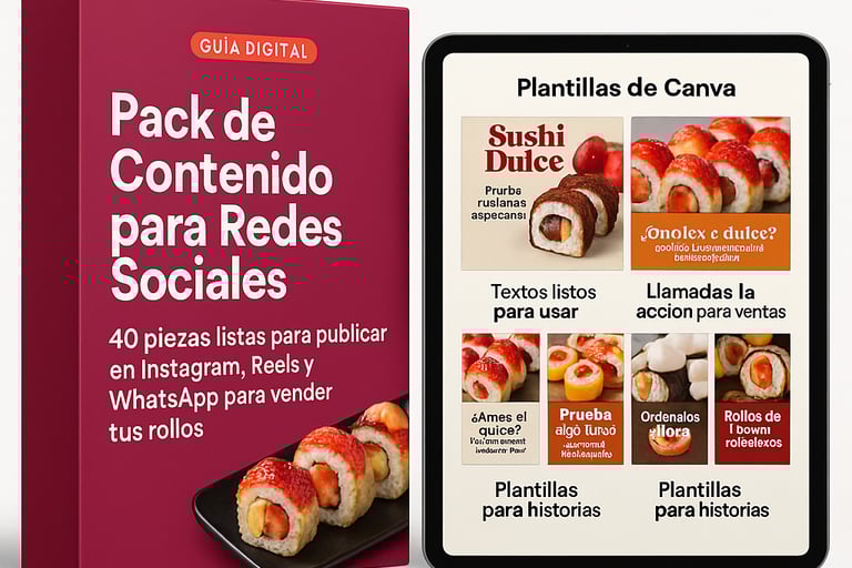 "40 piezas listas para publicar en Instagram, Reels y WhatsApp para vender tus rollos.